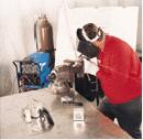 Bill Means also notices different operating characteristics. "With the inverter's concentrated arc, I can start welding almost immediately," he says. "I don't have to wait while the material heats up to a weldable temperature. Basically, I step on the foot control and begin adding filler rod."