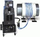 (Figure 2) In induction heating, electric current flows through the coil, generating a magnetic field in the part. The rapidly changing magnetic field creates eddy currents in the part, causing heat to be generated. This is similar to the heat generated in a transformer. The coils do not heat up, so welding can be done while the coil is still attached.