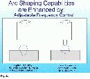 Third: Inverter-based welders let operators adjust the welding output frequency, from 20 to 250 Hz in the case of the Dynasty. Conventional welders have a fixed output of 60 Hz. Lowering the frequency produces a broader arc cone, widening the weld bead profile, which is great for build-up work. Increasing frequency above 60 Hz produces a tight, focused arc cone. This pinpoint heat control drives more heat into the weldment for better penetration and a narrower weld bead, which helps when welding in corners, on root passes and fillet welds or anywhere precision welding is required (see fig. 2).
