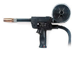 | 1/03 Spoolmatic 15A Optimum performance for aluminum repair work. Engineered for operator comfort, this gun gives you the portability and 15 foot cable assembly to access those hard to reach welds. 200 amps at 100% Duty Cycle. |